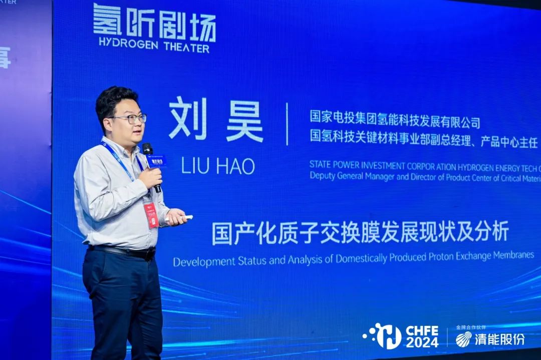 氢听剧场 | 刘昊:《国产化质子交换膜发展现状及分析》发表时间:2025-02-27 15:50 ![]() 作为CHFE2024极具特色品牌活动之一,累计邀请了超过100位行业专家与企业高管发表主题演讲,以演讲的形式,共同分享氢能行业前沿技术理念及实战干货。 今年氢听剧场与展览深度融合,于A馆二楼成功举办。设有「氢启匠心:装备技术及材料专场」、「氢链之路:制储运加专场」、「氢能进阶:降本增效与多元化应用专场」三大专场,为大家呈现一场氢能与燃料电池技术思想交流“盛宴”! 以下,将陆续发布氢听剧场嘉宾演讲内容速记。 国家电投集团氢能科技发展有限公司 国氢科技关键材料事业部副总经理、产品中心主任 刘昊